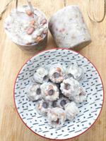 Kókuszzsírt felolvasztottam annyira, hogy elkeverhessem benne a napraforgómagot és madármogyorót (amit hálóban vettem még, de nem teszem így ki, mert nem kockáztatom, hogy a madarak lába beleakadjon a hálóba). Nekem most ezek voltak itthon, de mehet bele természetesen pl. mazsola, csipkebogyó, egyéb madáreleség is. Én most formákba tettem, de gömböcöket is lehet gyurmázni belőlük, majd hűvös helyre kerültek.