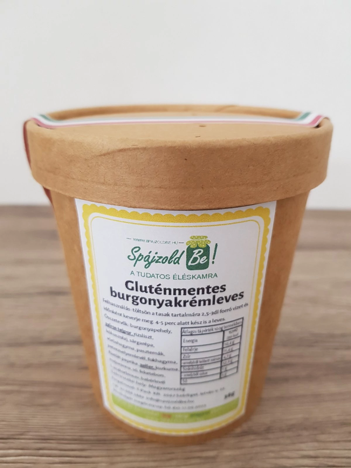 Vegyszermentes Magyar gazdálkodásból származó alapanyagokból, 100%-ban organikus, kézműves termék. Kizárólag növényi összetevőkből. Vegetáriánus és gluténmentes étrendbe beilleszthető. Kétféle kiszerelésben kérhető; a poharas változat esetében a leves közvetlenül a környezetbarát és lebomló csomagolásból fogyasztható. Pár perc alatt teljes értékű, egészséges fogás!